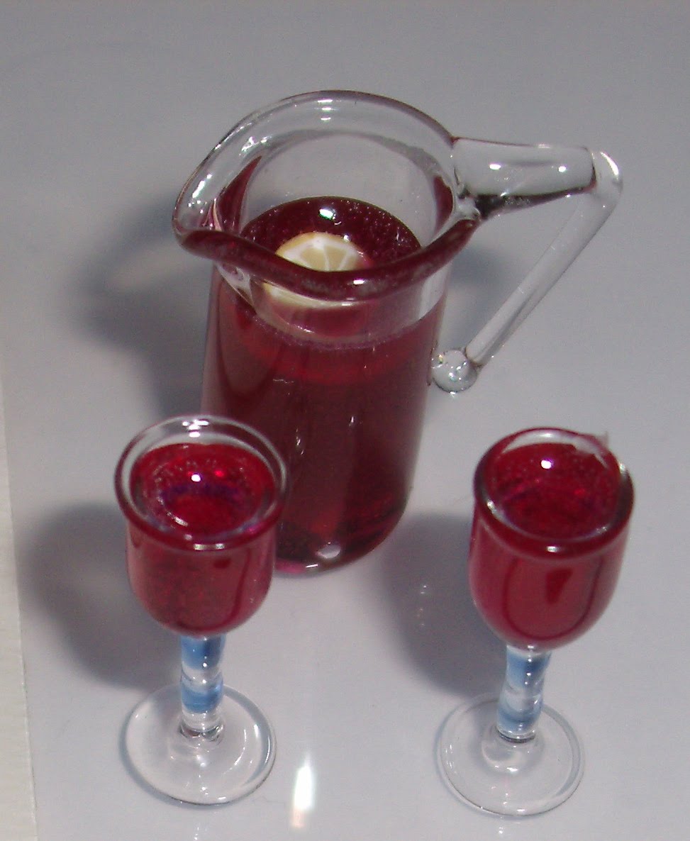 I have saved the best for last for all you lovers of the full fiesta feel with the beverages. We have as she calls herself "the life of the party". I present to you Senora Sangria.. She just loves her added lemon that is visible at the top of the Sangria.