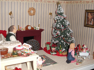 I just wanted to to share my Christmas at PopPops with you all. I made this scene and it all was focused around the tree. The tree was the first miniature that I chose for the room. I let the room tell me how it wanted the tree to be portrayed and I was pleased with how this three day project turned out. I actually had finished it on Christmas day. I didn't think that I was going to, but was glad and proud that I did.